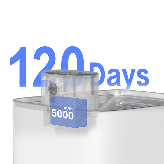 The built-in 5000mAh battery provides up to 120 days of cordless use, depending on usage frequency and mode.