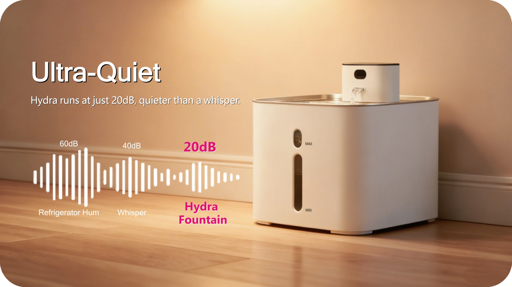 Not at all. Thanks to the pumpless magnetic water flow system, it operates quietly—perfect for sensitive pets and light sleepers.