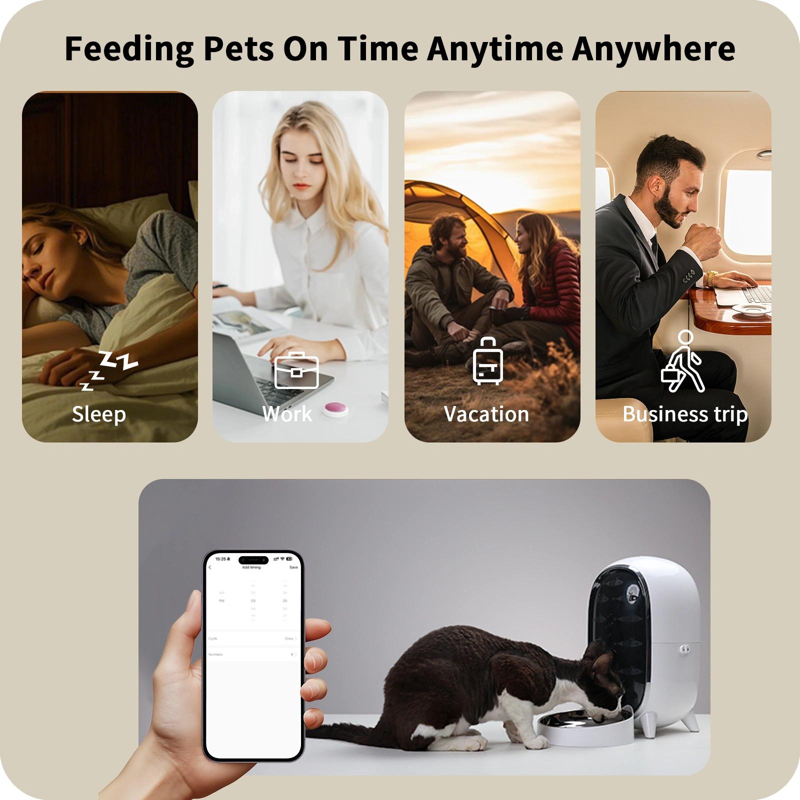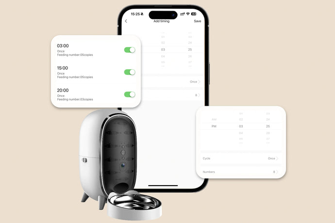 Set meal times and portions to match your pet’s diet needs.
