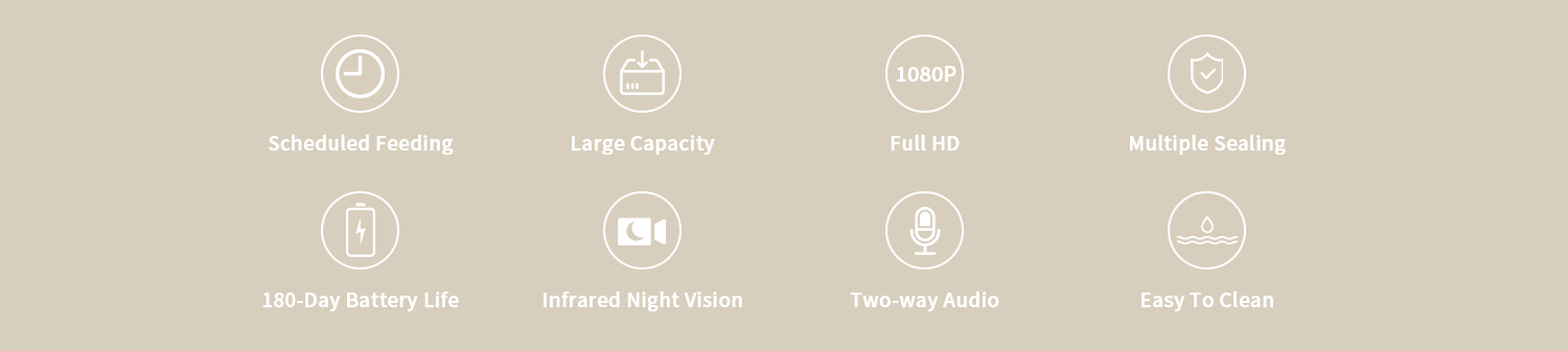 Built-in HD camera with night vision lets you check your pet’s meals anytime.